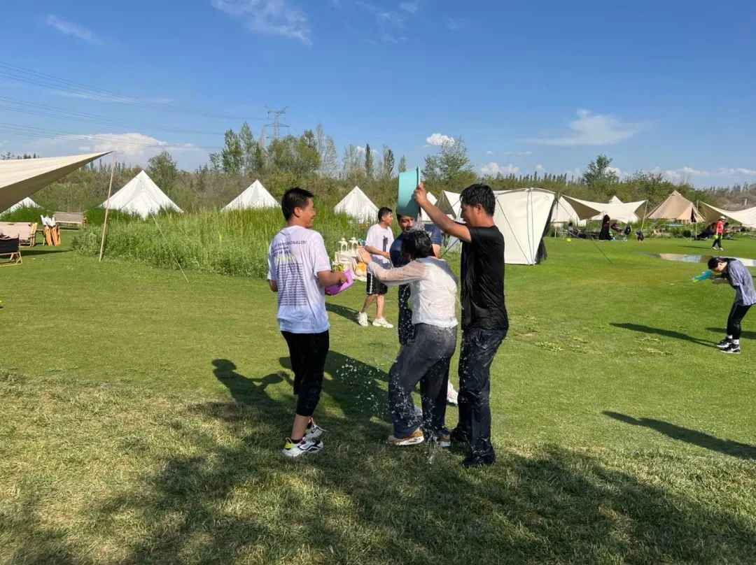 夏日的事當然是玩水啦!“水”與爭鋒環節把本次團建活動氣氛拉向高潮?;顒娱_始后,王鑫以迅雷不及掩耳之勢端起一盆水給大家表演了個散花,在場所有人無一幸免,被澆出透心涼。此時水槍已經來不及回擊了,大家個個打起精神,端起小水盆,拿起小水桶,準備回擊。盡管烈日炎炎,現場依舊狂歡,熱鬧非凡。彰顯了夯中人的青春與風采。