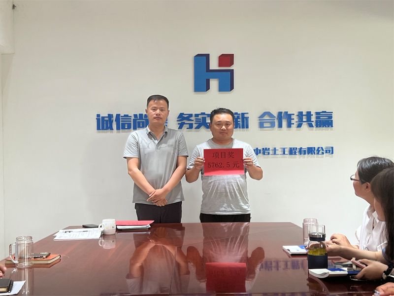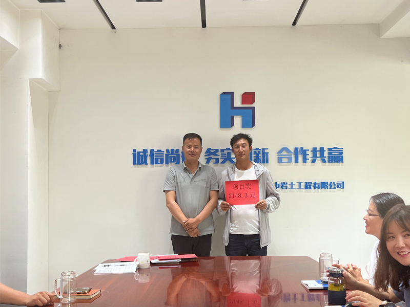 寧夏夯中巖土有限公司2022年第二季度項(xiàng)目獎(jiǎng)金頒發(fā)現(xiàn)場(chǎng)