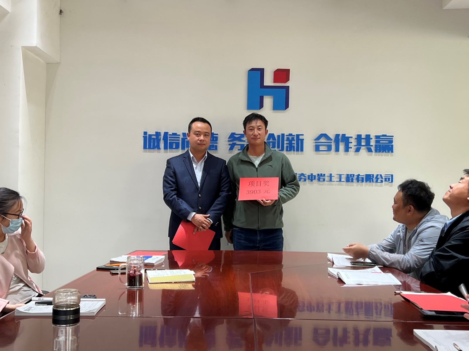 不忘初心,砥礪前行,夯中巖土2022年第一季度項目獎金頒發現場
