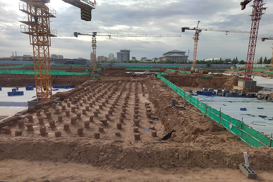 鹽池樾風華住宅小區項目位于吳忠市鹽池縣政諧北路西側、文化西街北側。本項目設計采用短螺旋擠土CFG樁進行地基處理。