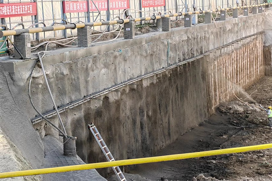 白云地產(chǎn)鳳凰華府B區(qū)(酒店)基坑支護項目位于銀川市金鳳區(qū)鳳凰華府B區(qū)東北角。本項目基坑開挖深度大、緊鄰已建住宅樓,周邊環(huán)境復(fù)雜,基坑安全等級為一級,設(shè)計采用鉆孔灌注樁排樁+拉錨鉆孔灌注樁排樁和土釘墻支護形式進行支護。